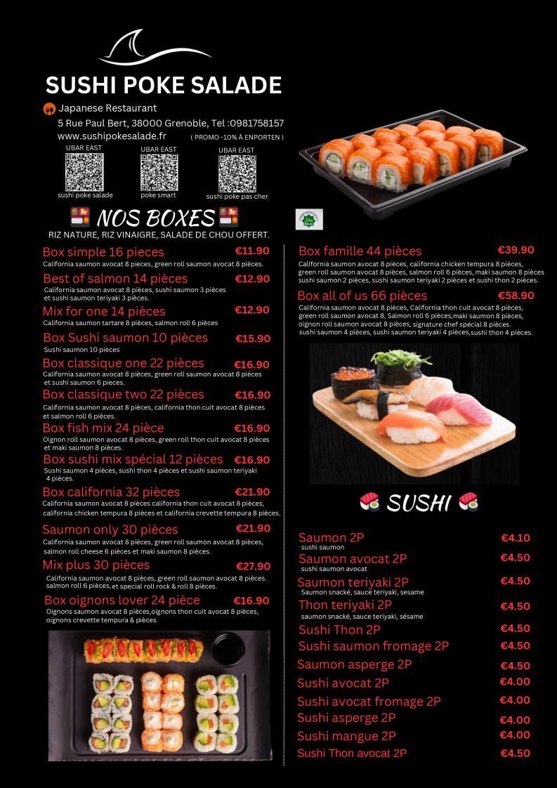 If you're looking for a culinary treasure in Grenoble, look no further than Sushi Poke Salade. Nestled at 5 Rue Paul Bert, this sushi restaurant has quickly become a local favorite, celebrated for its incredible poké bowls and sushi offerings. Imagine a cozy atmosphere filled with the tantalizing aroma of fresh ingredients and the welcoming chatter of satisfied diners; this is the essence of Sushi Poke Salade.